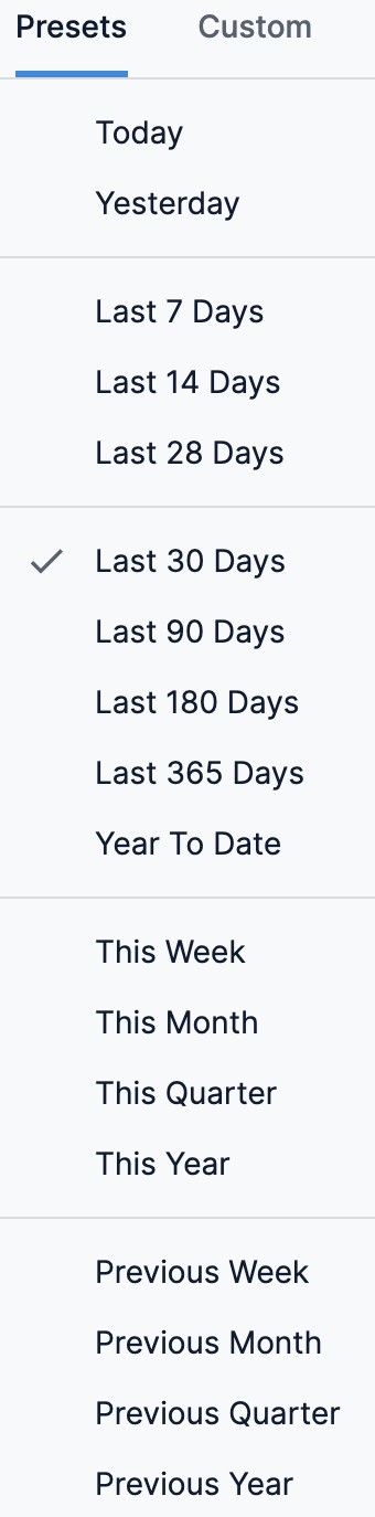 By default, the Last 30 Days is selected.