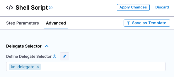 You can select a delegate for a step to use in the step's Advanced settings, Delegate Selector.