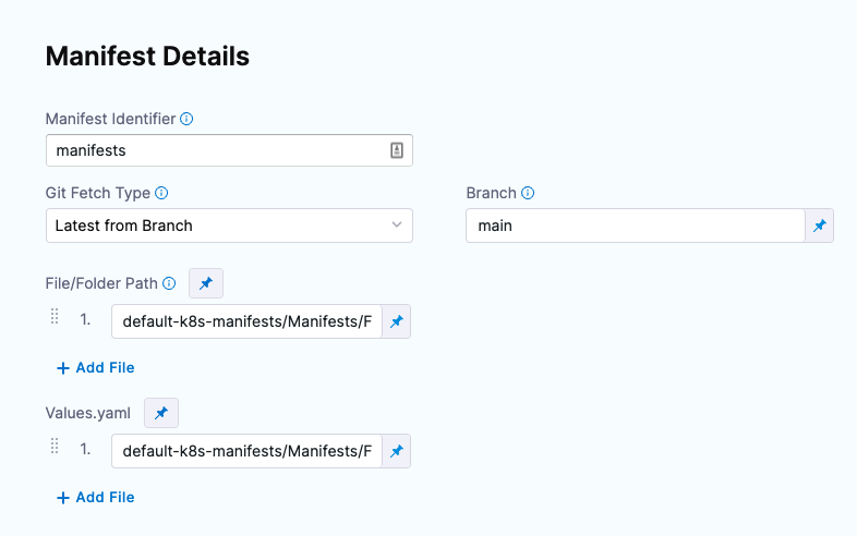 Here's a quick video showing you how to add manifests and Values YAML files in Harness. It covers Kubernetes as well as other types like Helm Charts.- YAML