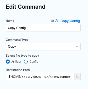 In the stage Service tab, you add the artifact metadata and the related config files to execute on the target hosts.