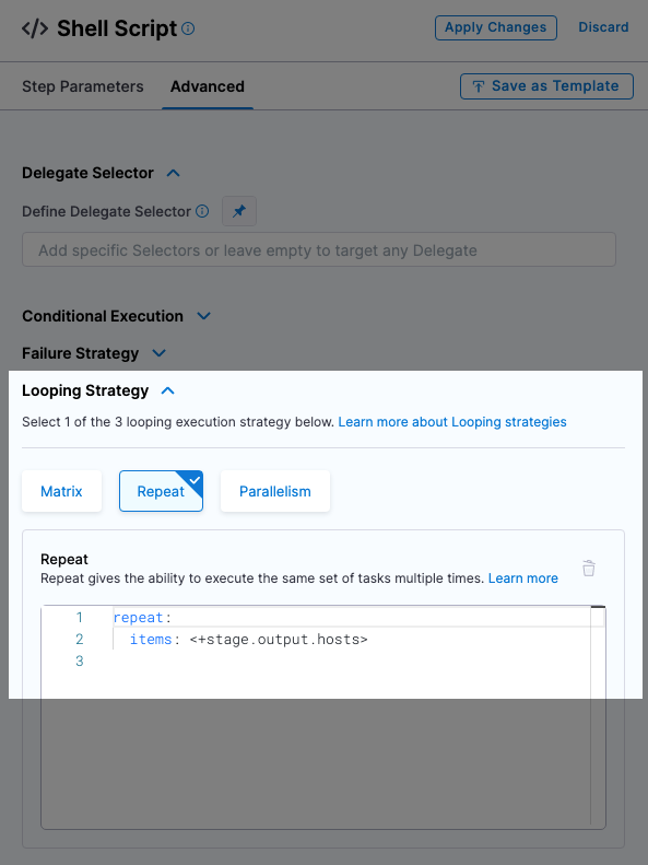 The looping strategy is automatically added to the Deploy step and configured for the deployment type you selected: