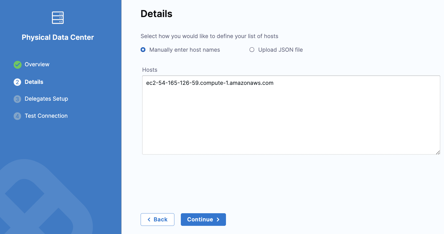 • Select preconfigured hosts from Physical Data Center