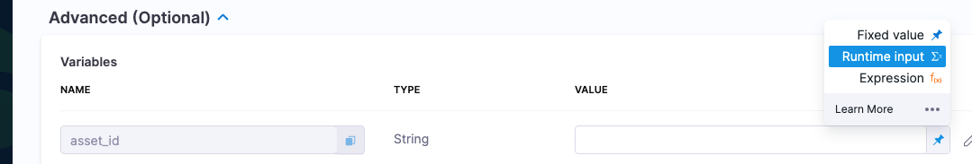 3. In Environment Variables, for asset_id, enter the value 12345678.