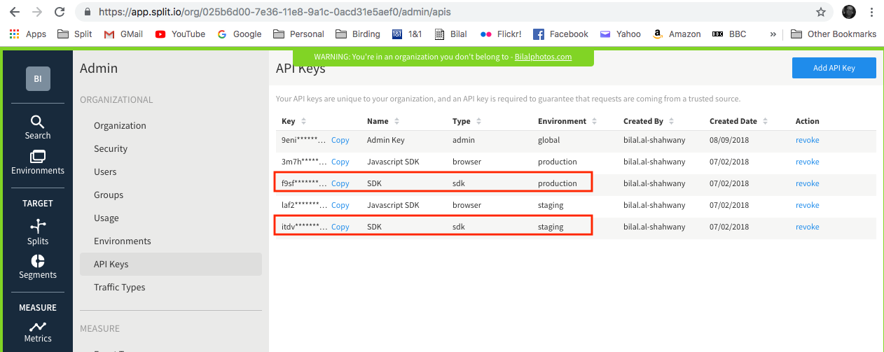 • Alternatively, verify that you are using the correct SDK API key for the intended environment with feature flags.