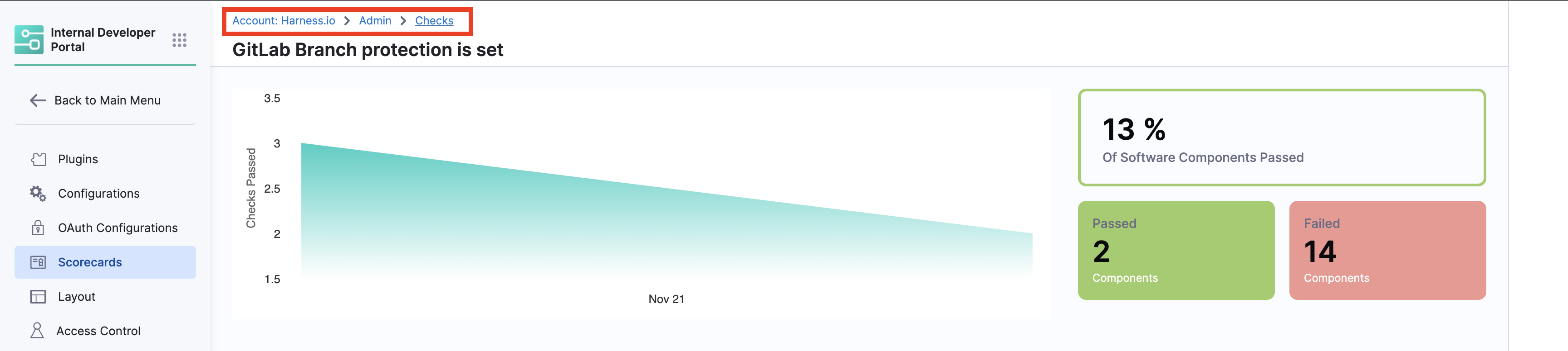 Follow the breadcrumbs on the top of the page to navigate across both the pages i.e., list of all checks and individual check overview page
