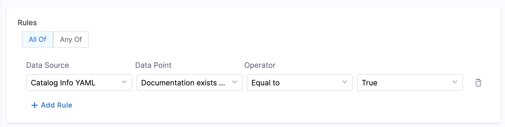 backstage.io/techdocs-refconfigured or not. - Calculation Method: The catalog YAML is inspected to check if the