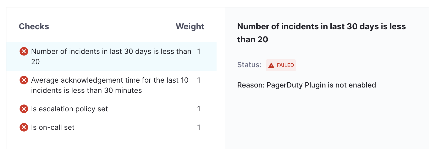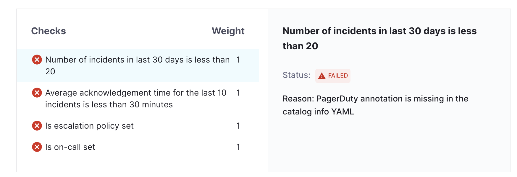 pagerduty.com/service-idconfigured or not. - Calculation Method: The catalog YAML is inspected to check if the