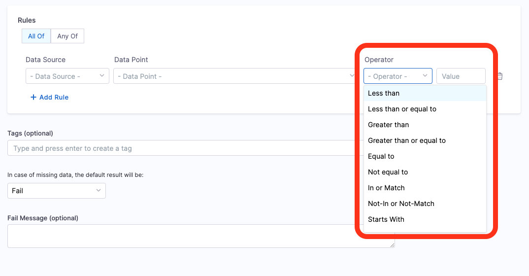 - Is on-call Set - This data point can be used for creating rules that will check if the on-call is set for a given service.