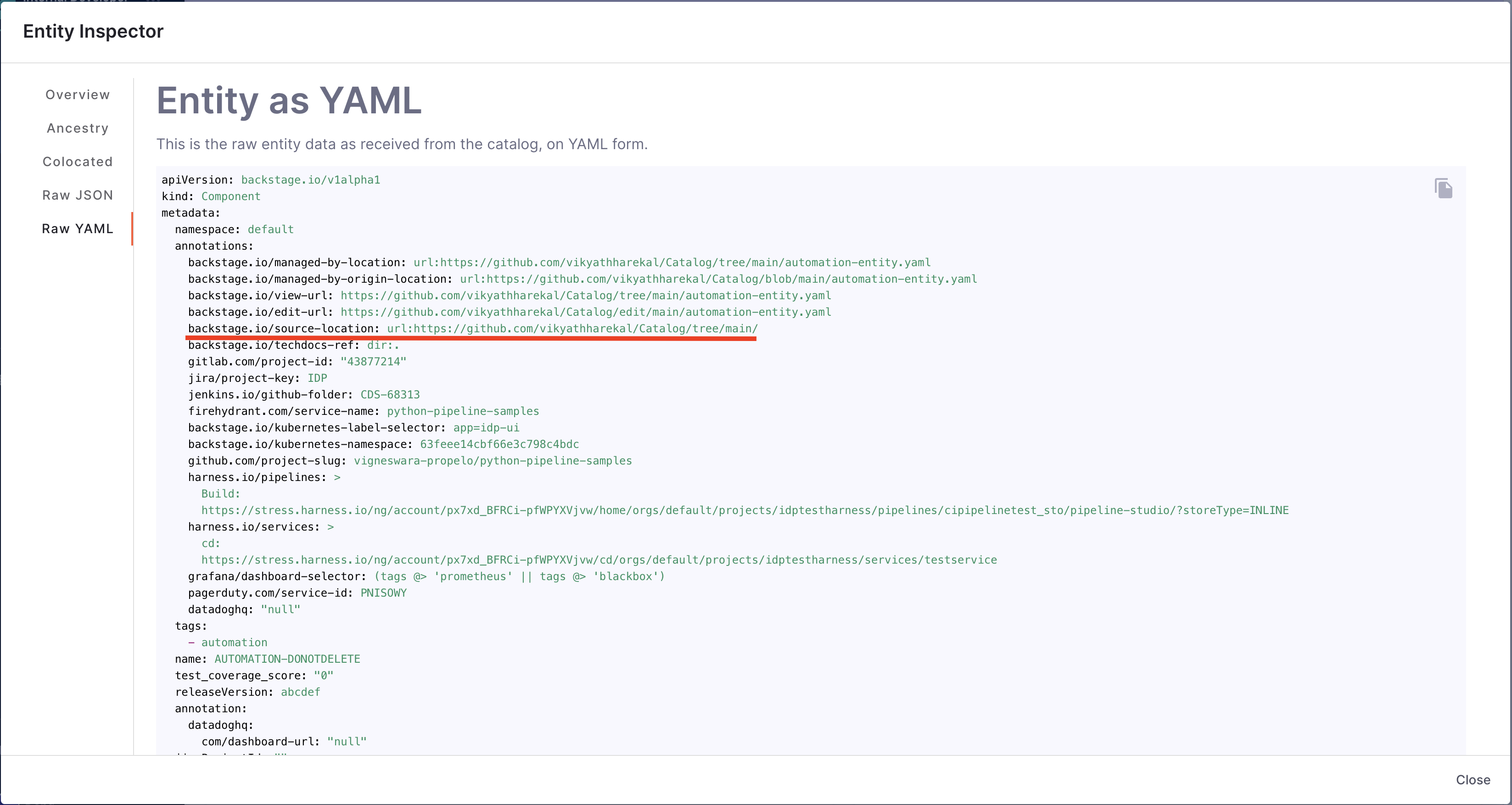 backstage.io/source-locationannotation if the catalog YAML file is present outside the source GitHub repository.
