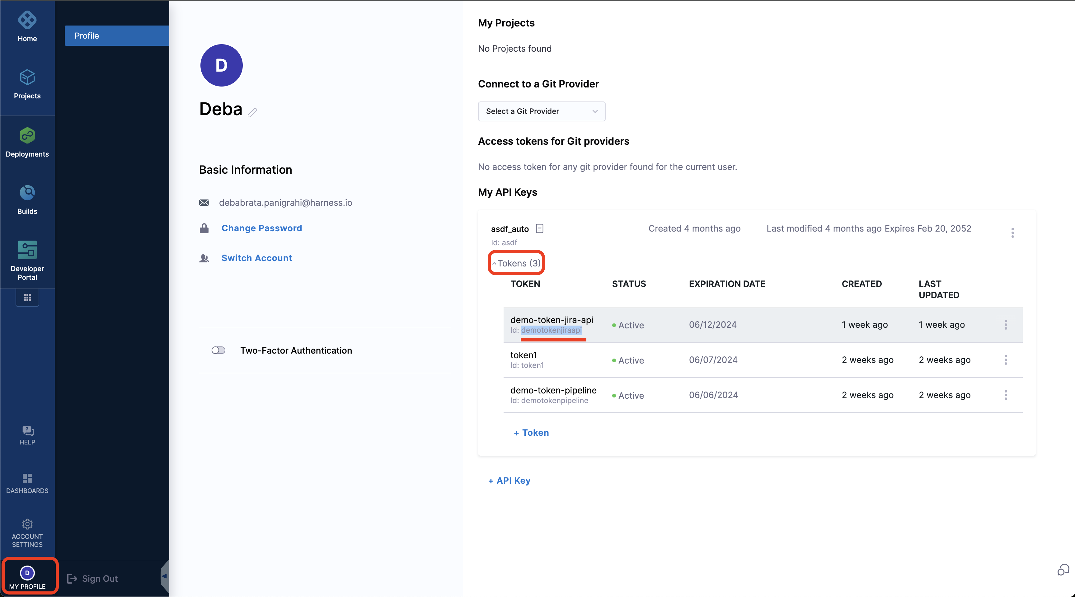 1. Under header x-api-key: <+secrets.getValue('account.TOKEN_ID')>, add the token ID for your API key. Get your token ID from your Profile