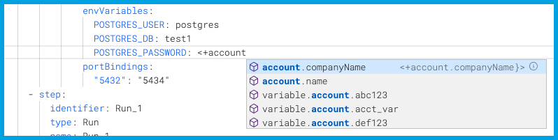 Additionally, certain step types, such as Run steps and Shell Script steps, can utilize and produce input, environment, and output variables that you define in the step settings. You can also reference these with expressions.