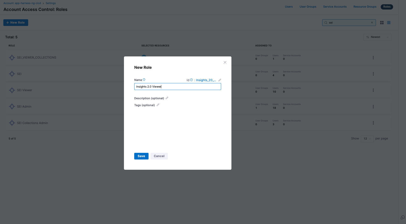 Harness SEI provides out-of-the-box roles for setting up access in SEI 2.0: SEI Admin, SEI Team Manager, and SEI Viewer.
