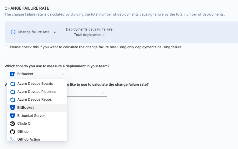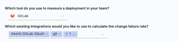 • Choose any existing integrations you want to utilize for calculating the change failure rate.