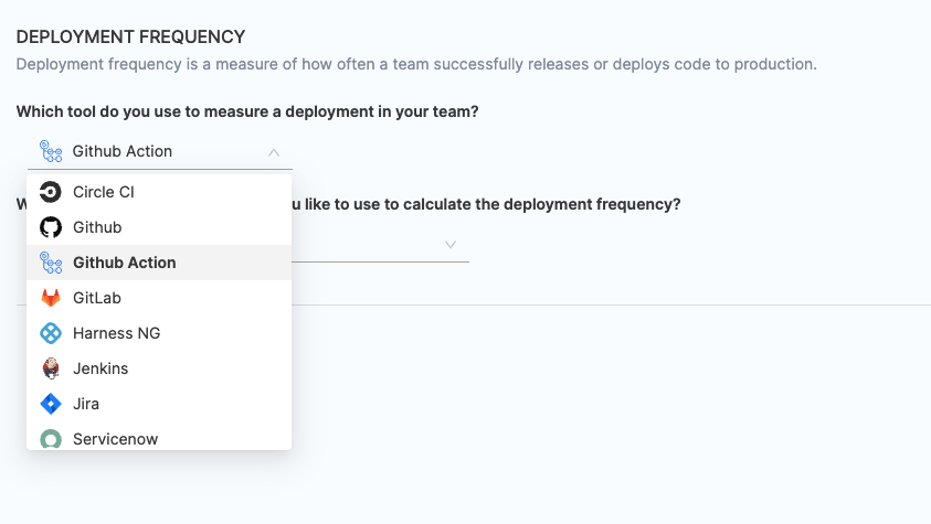 • Select any existing integrations you wish to use for calculating deployment frequency.