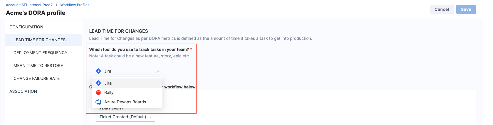 The DORA profile in Harness SEI sets the definition for measuring the DORA metrics across your organization. In this topic we cover how you can create and set up the DORA profile and configure the definition for the DORA metrics across various combination of tools.
