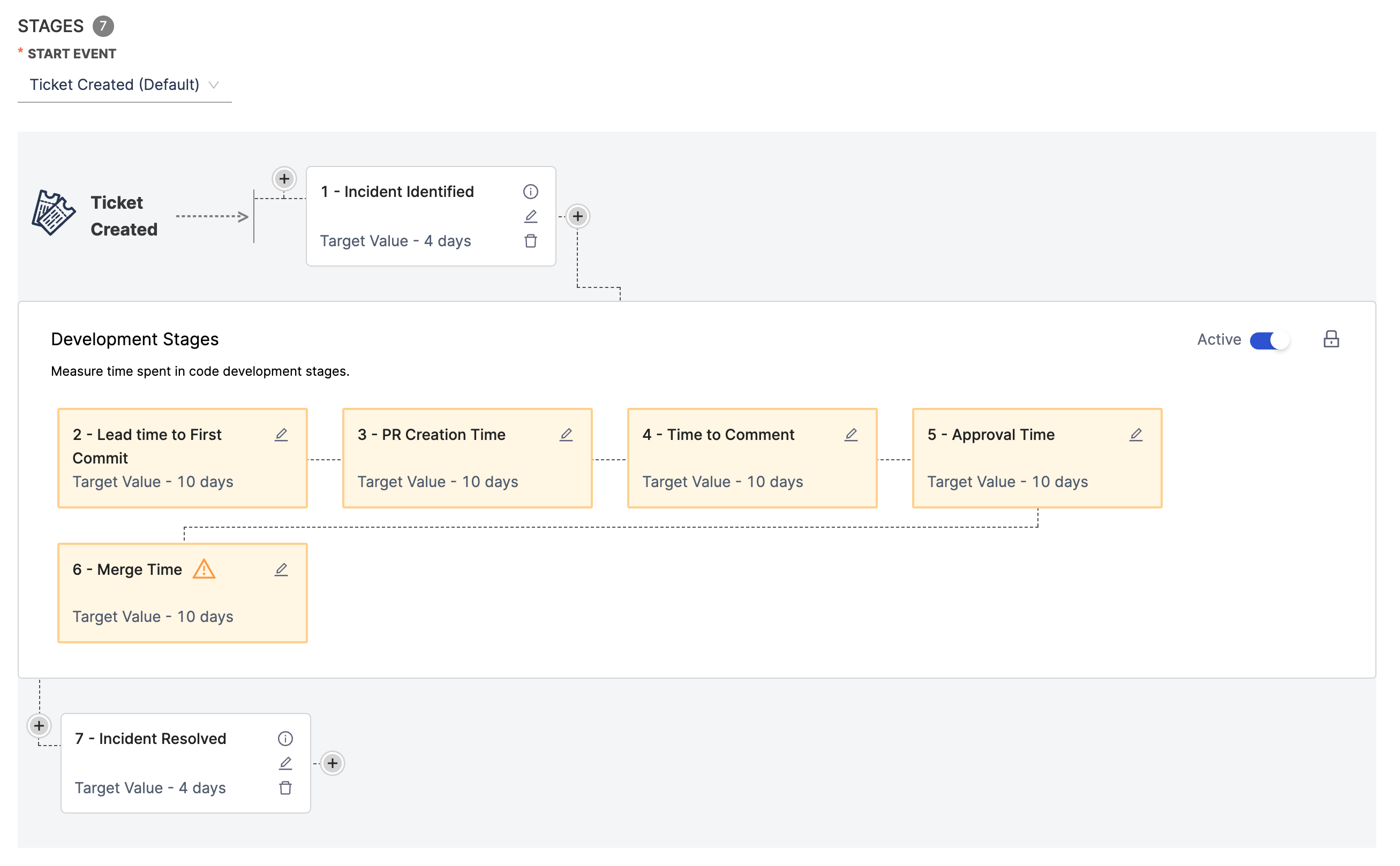 • Default development stages (tracked via your SCM) are by default configured. You can enable or disable these as needed.